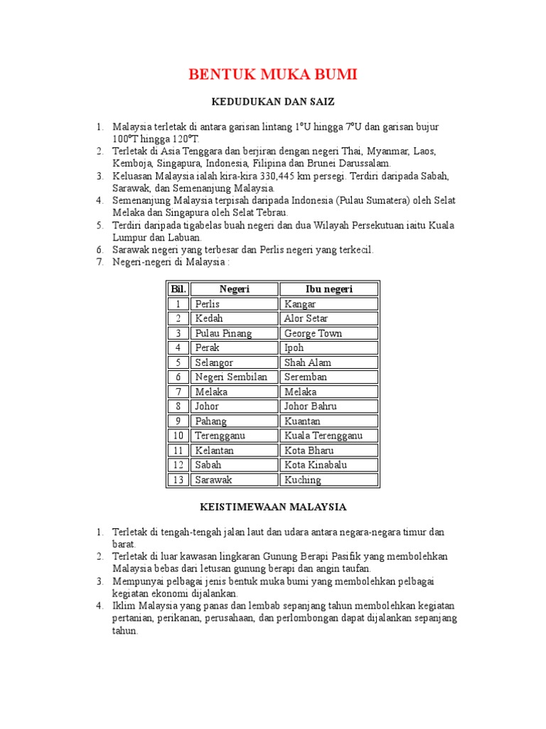 Ejercicio De Bab 6 Bentuk Muka Bumi Di Malaysia