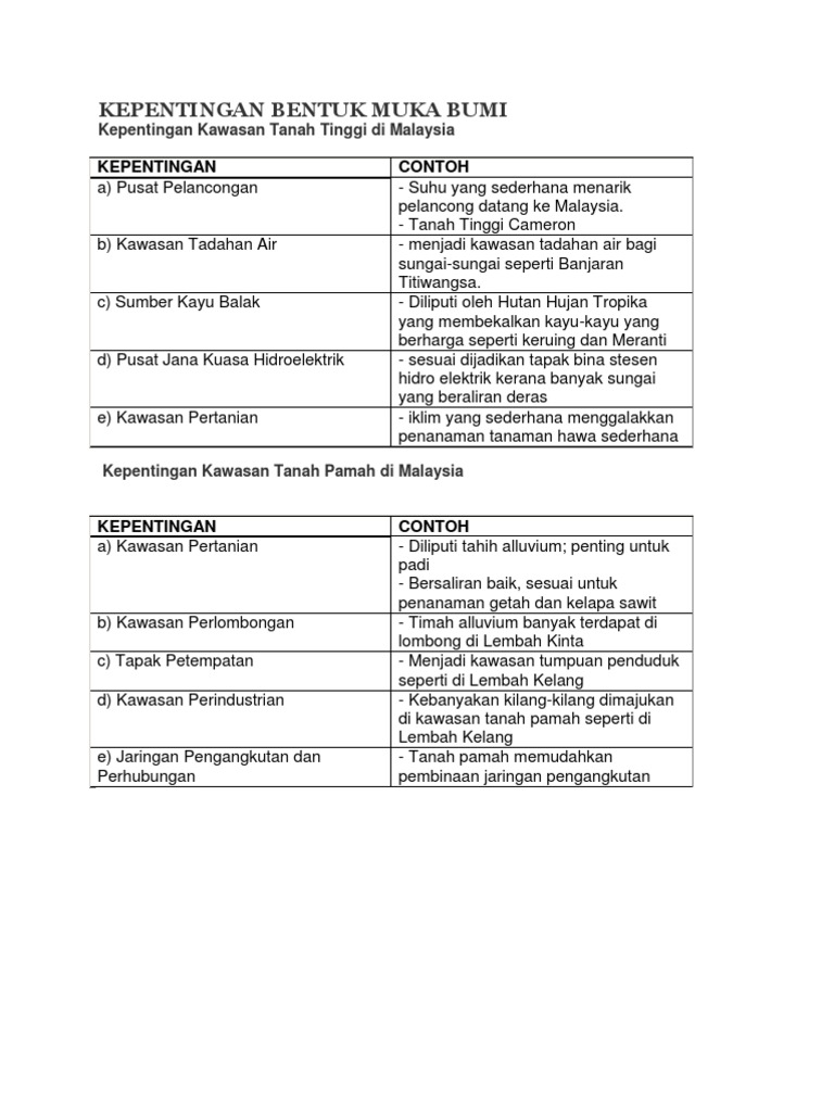 Kepentingan Bentuk Muka Bumi Di Malaysia Tanah Pdf